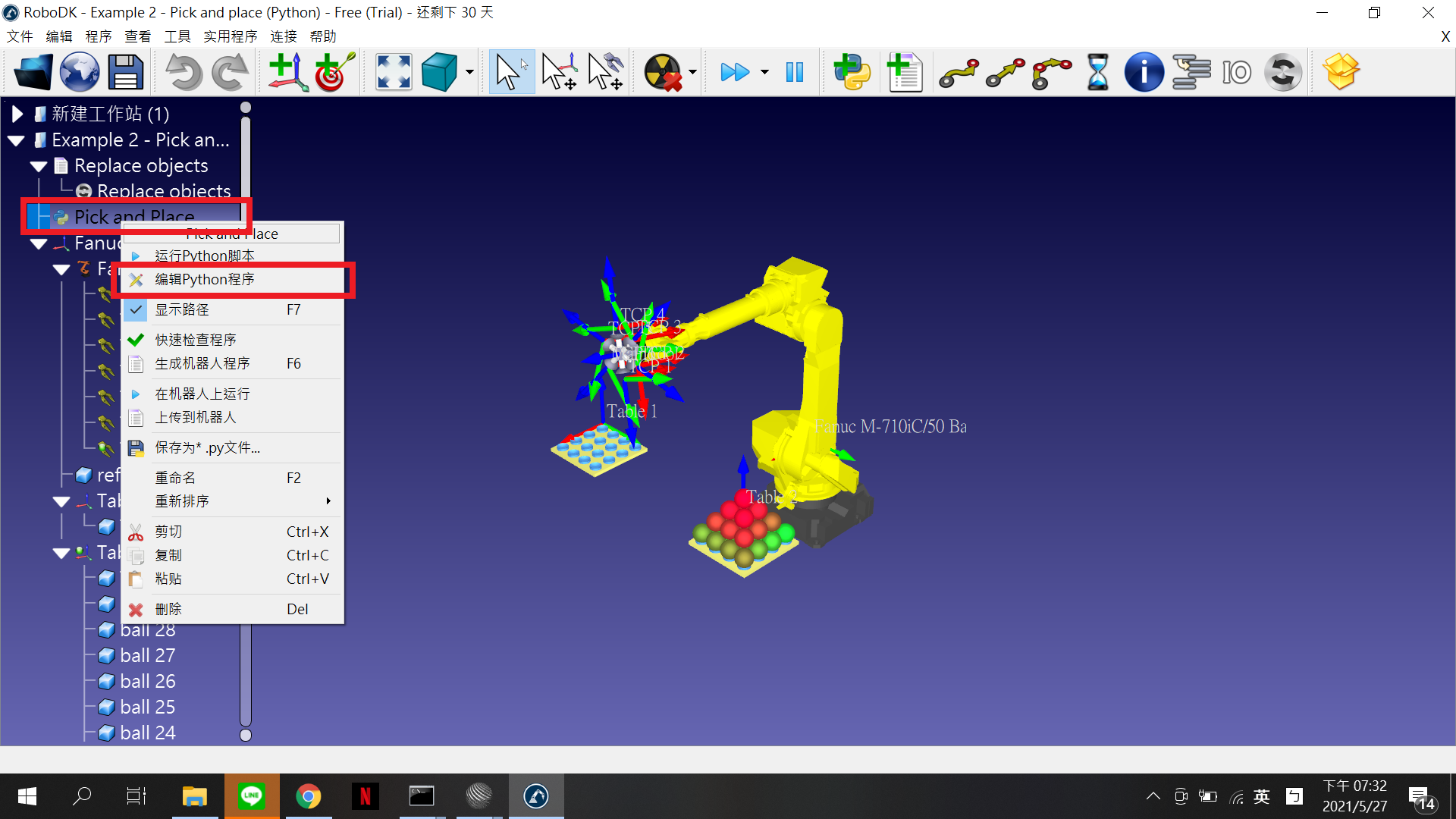 左側上方的Pick and Place點擊左鍵->編輯Python程序 即可作動